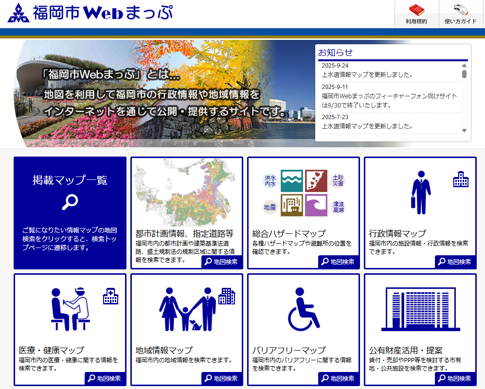 - 「福岡市Webまっぷ」にアクセスします。